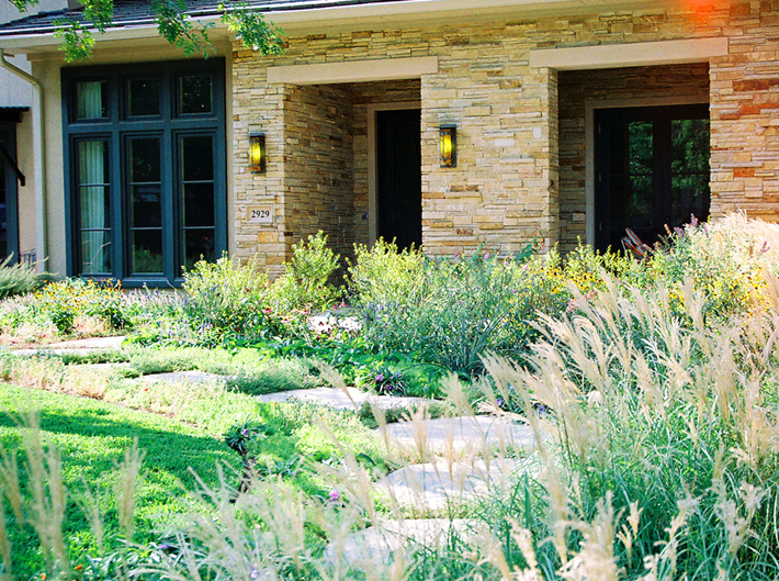 landscape features an informal entry garden,