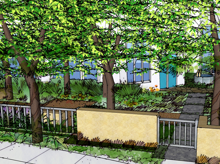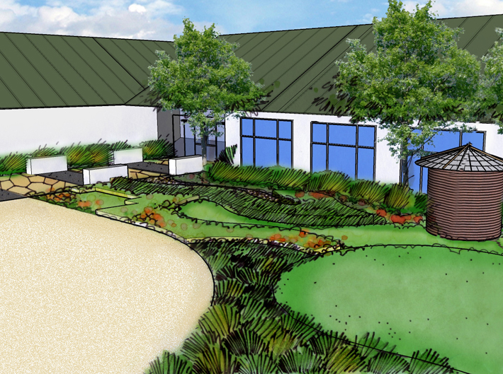 for existing municipal projects throughout the city. Each project began with a thorough investigation and audit of existing conditions, from which water wise landscape concepts were developed. Thirsty lawns and exotic plants were replaced with permeable pavements, native plants and efficient irrigation systems. The gardens have been featured on the annual Water-Wise Garden Tour.