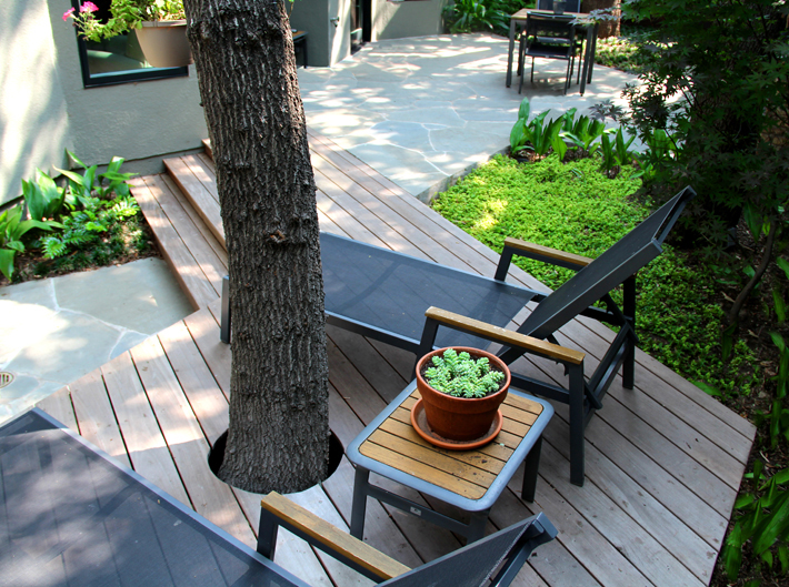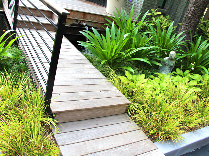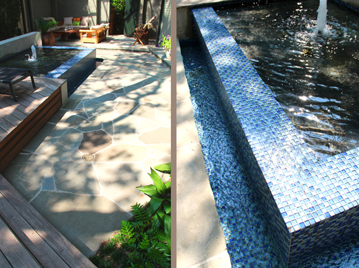 DESIGN :: Closely reflecting the architectural principles of the home, the landscape design for this urban residence combine simple materials and angular geometry to create a series of interesting outdoor spaces. The entry garden balances delicate water with the bold lines of ipe decking, transitioning to a private terrace overlooking Turtle Creek. The courtyard garden features infinity edge pool, conversation pit and expansive entertainment areas.