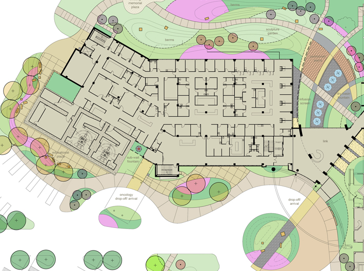 DESIGN :: Bold lines and flawless integration with architecture define the landscape design for this new health science center at the UT medical campus in east Texas. Garthoff Design collaborated extensively with the design team to develop a site plan that merges the new facility with the existing campus. Comfortable gathering areas, defined circulation and purposeful outdoor spaces serve the needs of this healthcare and educational facility.